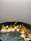 Crémeux de fromage frais au potimarron, coulis de potimarron, croquant au maîs, siphon au pop-corn & marron caramélisé